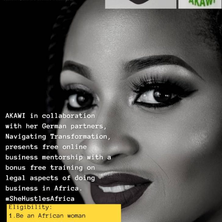 Overview #SheHustlesAfrica is a joint initiative of the indigenous NGO, African Kids and Women Rights Empowerment Initiative (AKAWI) and the German business organization, NavigatingTransformation. #SheHustlesAfrica targets female African entrepreneurs and assists eligible participants to set up their businesses, solve business challenges and grow. It is tailor-made to address the particularities of the African business terrain…